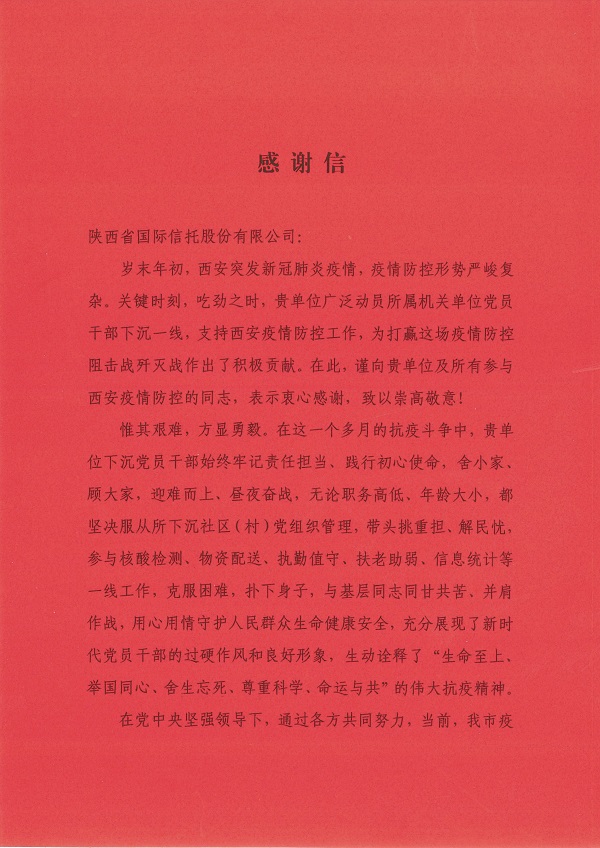 ¹«Ë¾ÊÕµ½Öй²Î÷°²ÊÐί×éÖ¯²¿·¢À´µÄллÐÅ